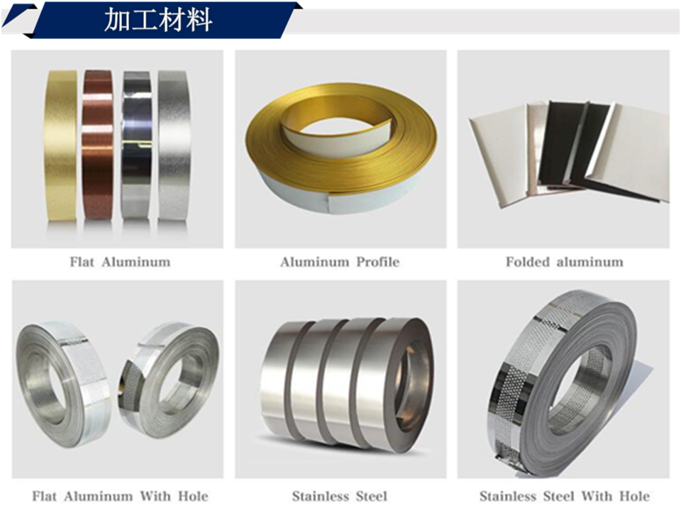 1.可加工不同材質(zhì):不銹鋼和鋁邊帶;