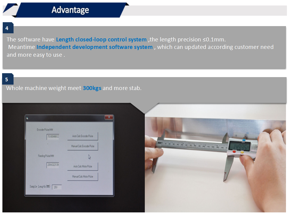 5、帶有長(zhǎng)度閉環(huán)控制系統(tǒng),長(zhǎng)度精度軟件控制,誤差≤0.1mm。并且軟件自主開發(fā),可根據(jù)客戶需求進(jìn)行更新。
