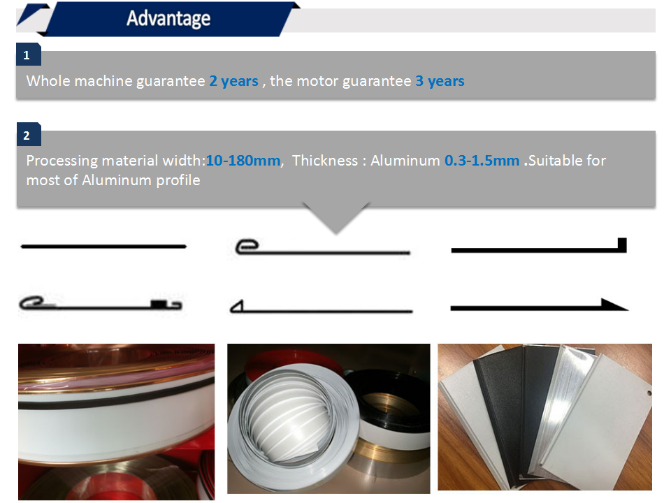 整機(jī)特點(diǎn)1、整機(jī)質(zhì)保兩年,電機(jī)三年。(不包括皮帶,不銹鋼切割刀頭,感應(yīng)開關(guān)和繼電器)2、加工材料高度10-160mm , 鋁板厚度0.3-1.5mm3、機(jī)器內(nèi)部的加工件和板材全部鍍硬鉻...