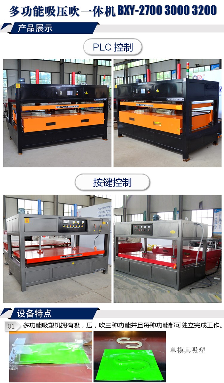 1.多功能吸塑機(jī)擁有吸,壓,吹三種功能,并且每種功能都可獨(dú)立完成工作。
